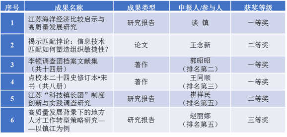 江苏省哲学社会科学优秀成果奖是江苏省哲学社会科学界规格最高的政府奖,该奖项由江苏省人民政府设立,每两年评选一次,旨在奖励个人和集体在哲学社会科学研究领域的优秀学术著作、论文、研究报告和普及成果,鼓励广大社科工作者从事哲学社会科学的前瞻性、创新性、科学性研究。近年来,学校积极推动哲学社会科学的繁荣发展,必赢官网的哲学社会科学高水平科研成果开始不断出现,本次的获奖数量和质量实现了新突破。