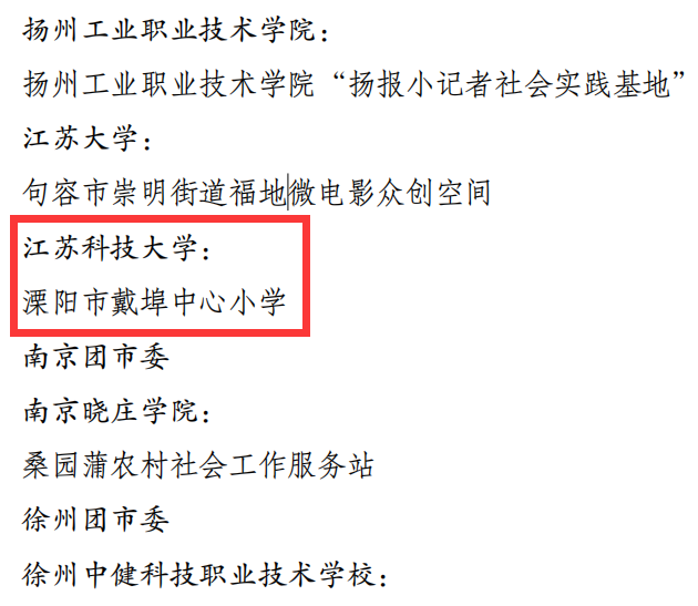 溧阳市戴埠中心小学荣获“优秀社会实践基地”称号