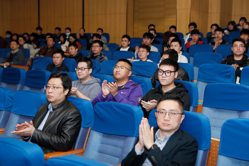 一个多小时的报告接近尾声时,彭洁播放了一段视频。视频中,中国核潜艇第一任总设计师彭士禄说:“我爱我的祖国,我爱核事业!”在场师生无不为之动容,用饱含崇敬的掌声将报告会推向最高潮。现场互动中,彭洁研究员寄语处于建党100周年特殊历史节点的母校学子:“在学校打好基础,努力学习,根据自己的兴趣去发展自己,在祖国需要的时候奉献自己。”