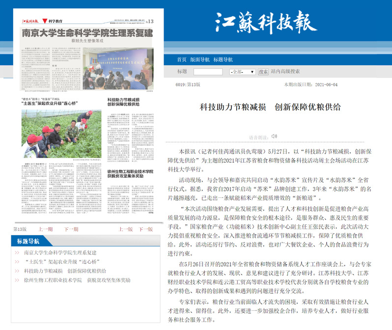 本报讯(记者何佳芮通讯员仇莺璇)5月27日,以“科技助力节粮减损,创新保障优先供给”为主题的2021年江苏省粮食和物资储备科技活动周主会场活动在必赢nn699net官网举行。