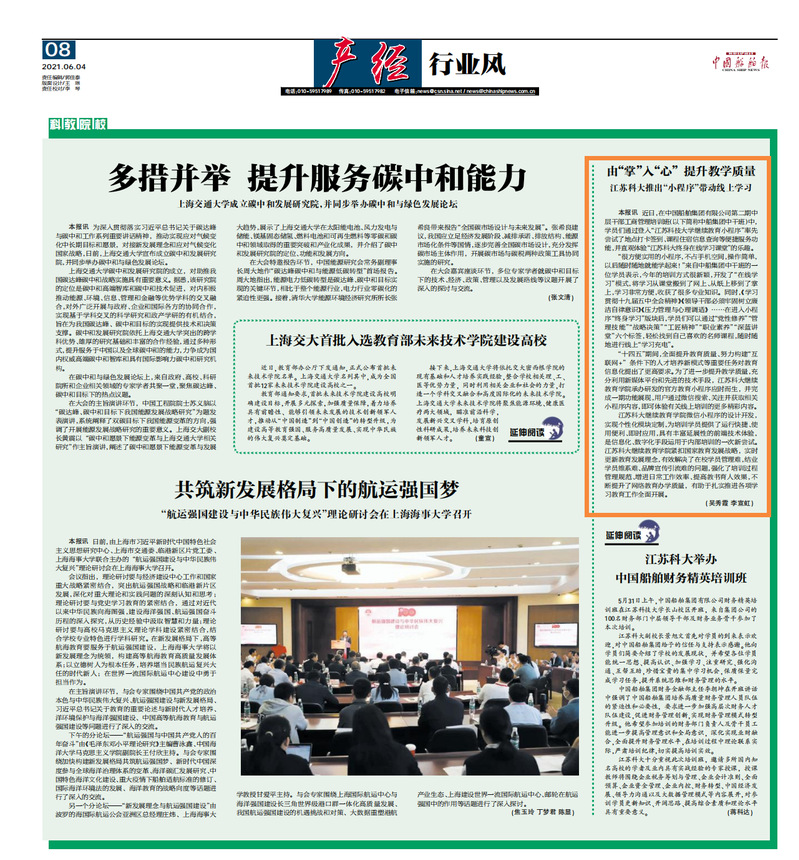 “十四五”期间,全面提升教育质量、努力构建“互 联网+”条件下的人才培养新模式等重要任务对教育信息化提出了更高要求。为了进一步提升教学质量,充 分利用新媒体平台和先进的技术手段,江苏科大继续教育学院承办研发的官方教育小程序应时而生,并完 成一期功能展现,用户通过微信搜索、关注并获取相关 小程序内容,即可体验有关线上培训的更多精彩内容。