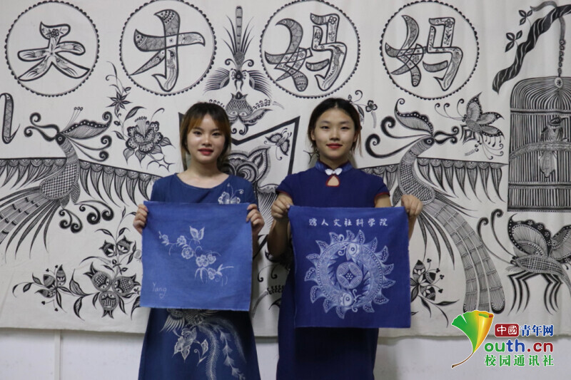 实践团队主要通过“直播+线下采访”的形式,学习宣传苗族蜡染非物质文化遗产,并邀请老师和学生参与其中。31日上午首先由苗族蜡染非物质文化遗产传承人杨而报浪老师线上为大家展示蜡染的过程。老师介绍到:蜡染即用蜡刀蘸熔蜡绘花于布后以蓝靛浸染,既染去蜡,布面就呈现出蓝底白花或白底蓝花的多种图案,同时,在浸染中,作为防染剂的蜡自然龟裂,使布面呈现特殊的“冰纹”,尤具魅力。直播过程中,老师着重讲解了蜡染制作过程中的上蜡和浸染中的环节:在上蜡的时候,必须用加热器把蜂蜡保持在液体的状态,避免蜂蜡由于温度过低而冷却成固体。在浸染的时候必须长时间将上好蜡的布料浸染在染缸里面,并且不停的移动布料,这样的效果最佳。蜡染艺术在古代时期称之为蜡缬,是一种古老而独特的传统印染艺术之一;它与绞缬(扎染)、夹缬(镂空印花)并称为中国古代三大印花技艺。蜡染艺术的印染历史中源远流长,历史悠久。在杨而报浪老师的解说下,实践团成员们了解到苗族蜡染被称为古代三大印花工艺,苗族妇女蜡绘,图案设计只凭构思绘画,也不用直尺和圆规,便可流畅画出图案。苗族蜡染的图案主要是以自然纹为主,自然纹以自然界中的花鸟鱼虫做素材,随心所欲地创作成别致的图案,造型生动,栩栩如生,其中鸟的变化最为丰富。随着苗族蜡染的繁荣和发展,现在的苗族蜡染图案也可以加入一些现代化元素,将苗族蜡染艺术成品制作成为玩偶、香包、手提包等等。在直播结束后,苗族蜡染非物质文化遗产传承人龙鹿老师带着两位实践团成员亲自感受上蜡与浸染以及脱蜡的整个过程。随着亲手接触这些环节,实践团成员杨仁红有感而发:“苗族蜡染技艺的巧夺天工、成品的精美绝伦令人十分惊叹,作为当代青年大学生应该努力学习,要为宣传和传承非物质文化遗产贡献自己的力量。”