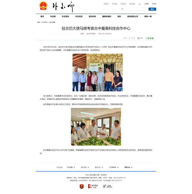 外交部:驻古巴大使马辉考察古中蚕桑科技合作中心