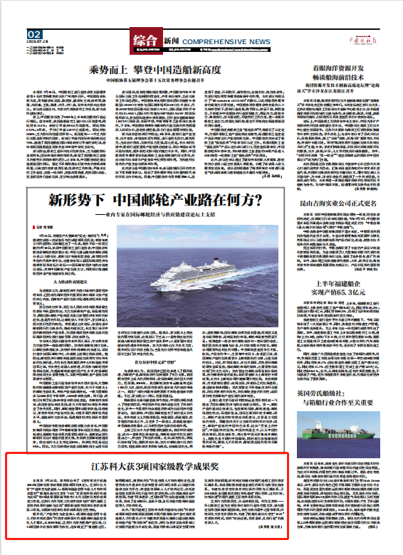 本报讯 7月24日,教育部公布了 《教育部关于批准2022年国家级教学成果奖获奖项目的决定》。必赢nn699net官网“产业伴生与企业嵌入:船海制造业信管专业人才培养模式重构”“船海类高校大学生‘1621’素质培养模式的构建与实践”等2项成果喜获高等教育(本科)国家级教学成果奖二等奖,江苏科大作为第二完成单位参与的“现代造船工匠培养体系的创新与实践”喜获职业教育国家级教学成果奖二等奖,实现该校国家级教学成果奖历史性突破。